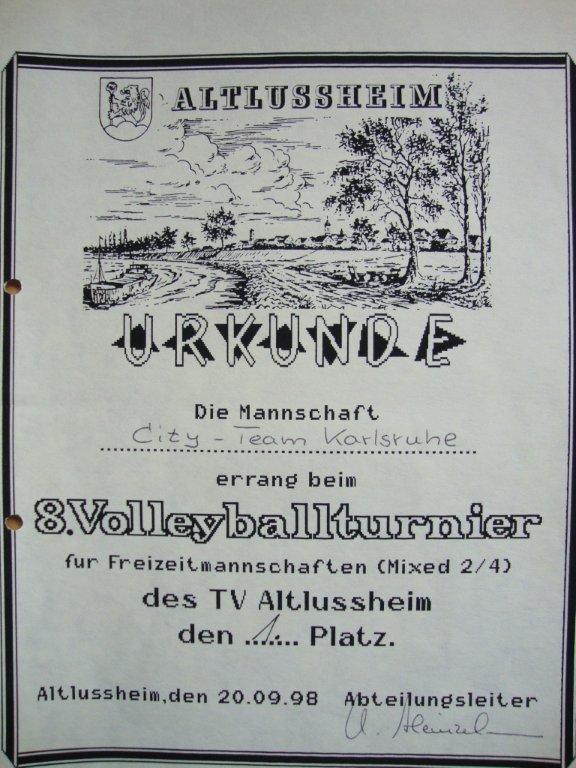 Die Turnierbekleidung wechselte von weißem T-Shirt mit City-Team-Aufdruck zu Beginn (gingen mit den Jahren irgendwie verloren), über jeder trägt was er möchte zu knallgelb und hellblau jetzt zu unserem professionellen Shirt mit Sponsorenaufdrucken, das auch nach außen symbolisiert: wir sind ein starkes Team!