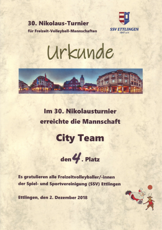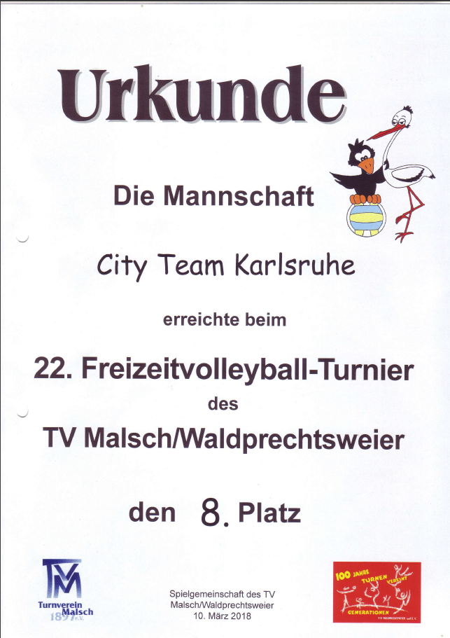 Ein Höhepunkt des Turnierjahres ist immer das Turnier in Malsch, mit anschließend der besten Lasagne überhaupt von Herta bei Volodia zu Hause. 2010 wurden wir dort allerdings nach einem heißumkämpften Endspiel nur zweite – die Siegermannschaft waren unsere Gäste und Freunde Volodias aus Rumänien, ehemalige Ligaspieler, die eigens für dieses Turnier angereist sind. Es gab bei der Siegerehrung sogar ein Grußwort der Gemeinde Malsch, Wimpel und Geschenke wurden völkerverbindend ausgetauscht. Ein schöner Moment der unterstreicht: egal wie alt Du bist, ob Professor oder Student, In- oder Ausländer – auf dem Spielfeld zählt nur der Ball! Einer, den wir bei dem Nikolausturnier in Ettlingen gewonnen haben, ist als Glücksbringer bei Turnieren immer dabei. 😊