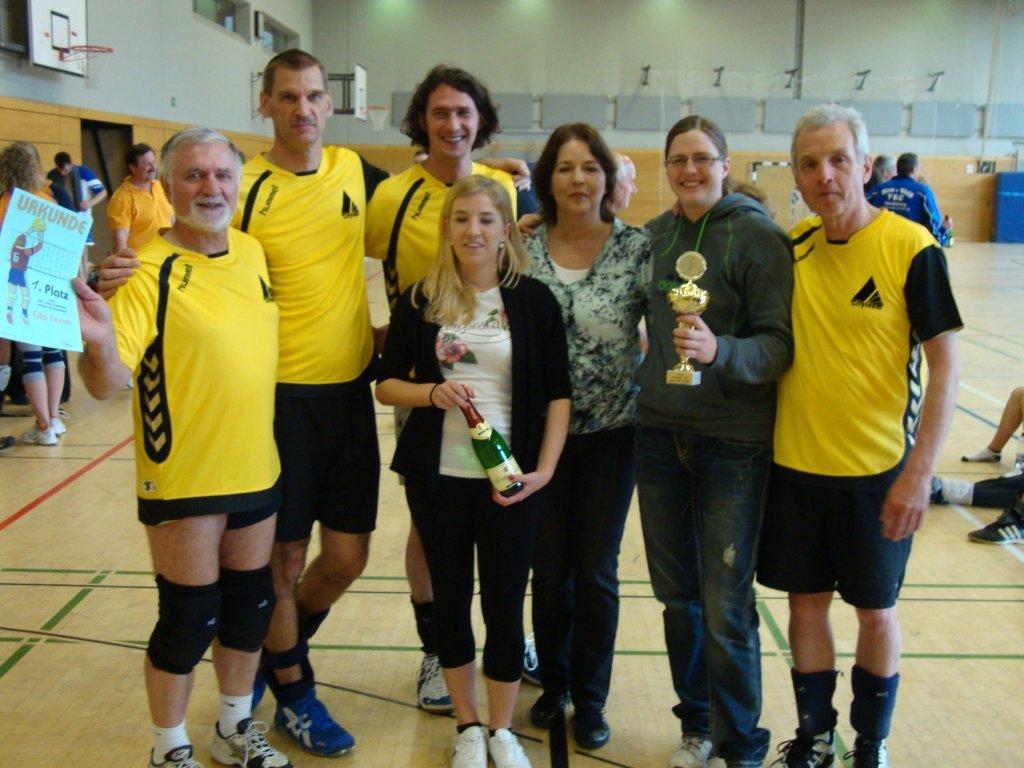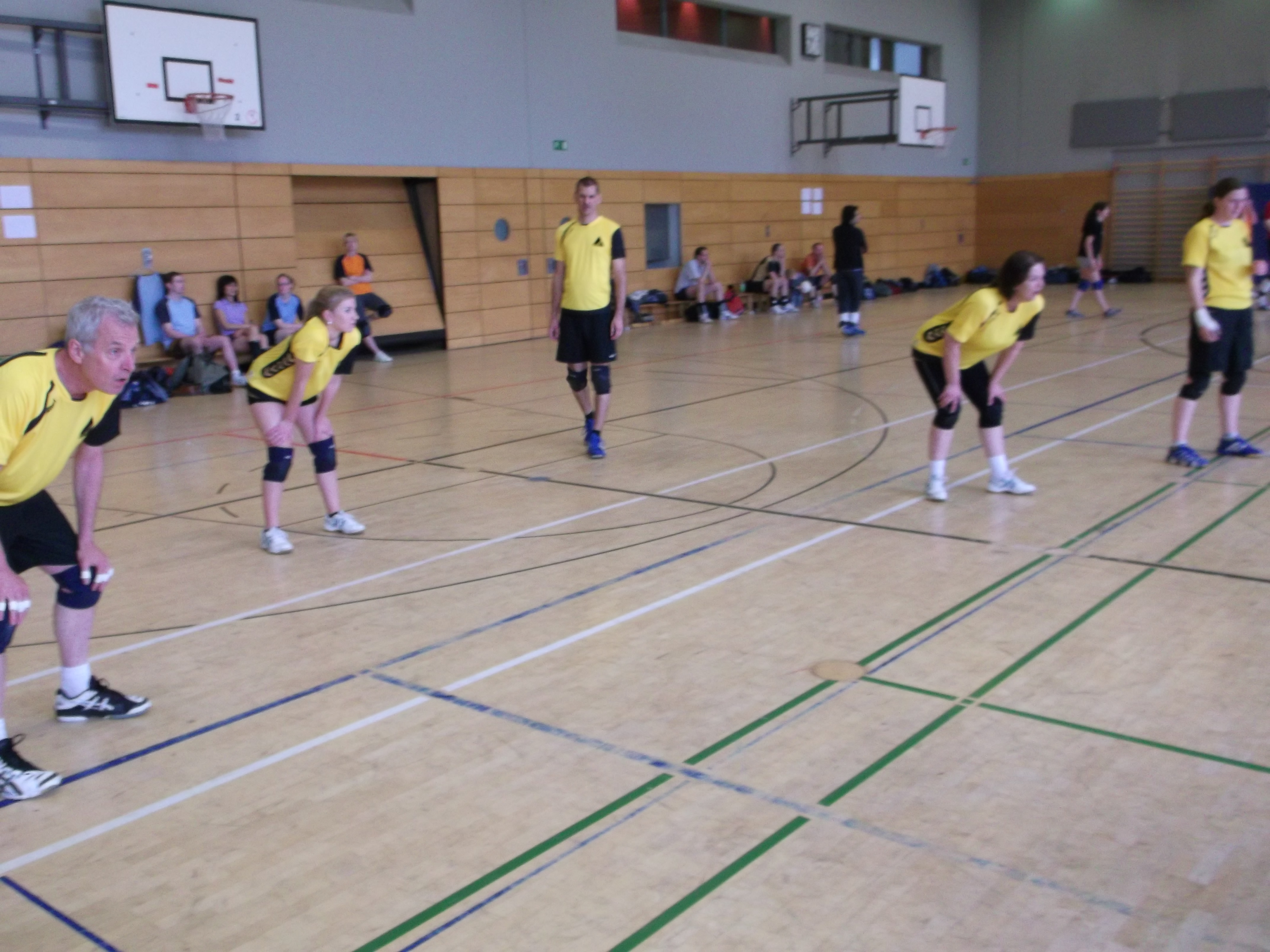 5. Mai - Turniertag: Von überall her - Karlshorst, Naumburg, Berlin und natürlich Karlsruhe - waren Mannschaften angereist um einen Tag lang mit Herz, Spaß und Leidenschaft Volleyball zu spielen. Die Zeit verging schnell und das Entscheidungsspiel gegen eine osteuropäische Mannschaft stand für uns an. Wir verstanden kein Wort von der Gegenseite, aber mit Wille und Ehrgeiz wurde allen Wechseln und Angriffen getrotzt und auch dieses Spiel gewonnen.