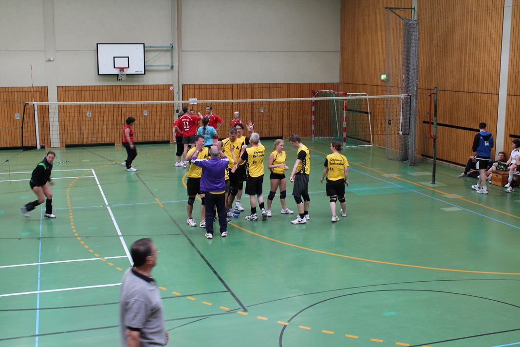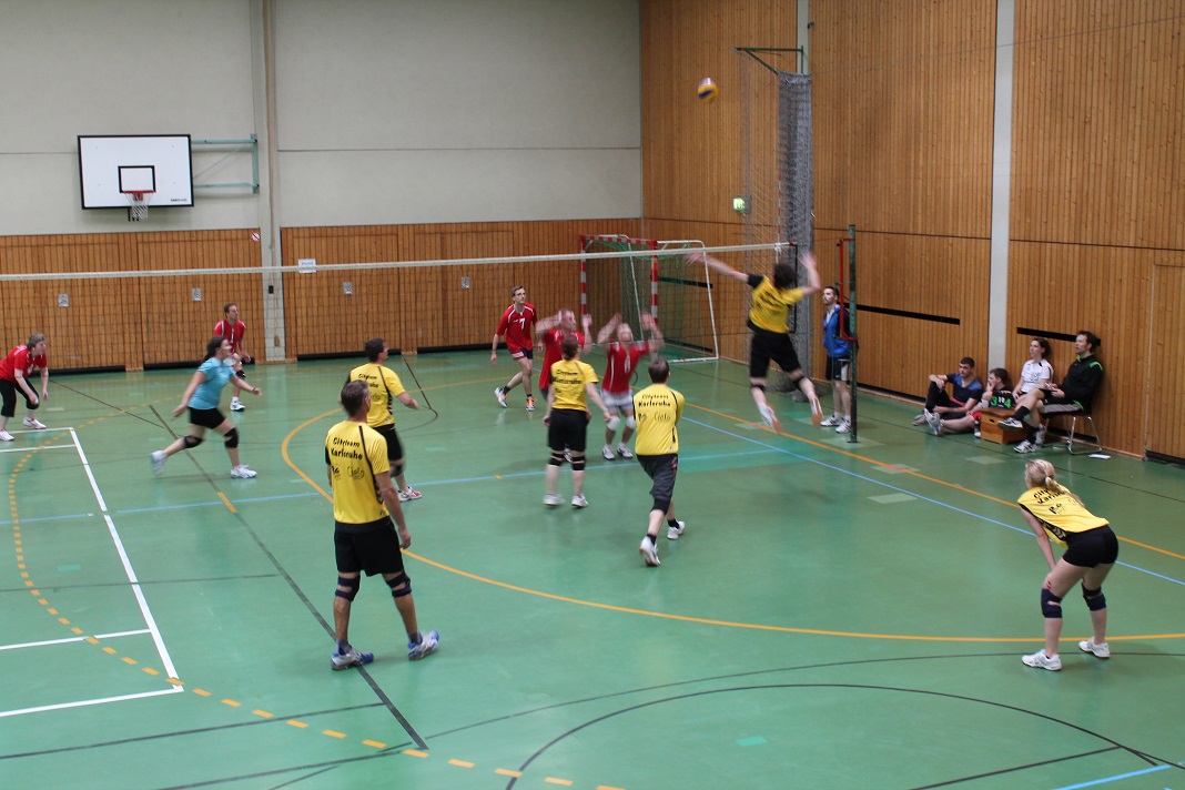 Am Sonntagmorgen nahm unsere diesmalige Cityteam-Turniermannschaft, bestehend aus Julia, Magda, Carmen, Mirka, Dario, Wilmar, Cris, Jürgen und Ravil mit neun weiteren Mannschaften am Freizeit-Volleyball-Mixed-Turnier der Sportgemeinschaft Eichenkreuz Karlsruhe e.V. teil.
